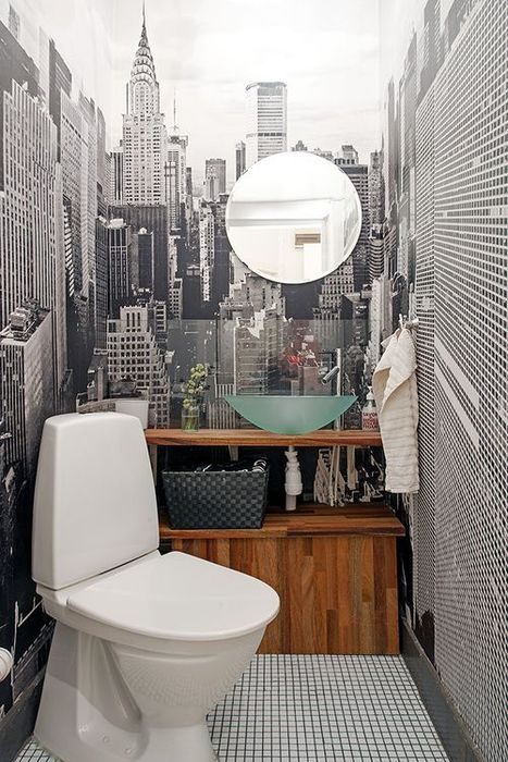 Чего так не хватает в маленьком туалете? Пространства и перспективы, но благо, что сегодня их не сложно создать при помощи фотообоев. Да, такая иллюзия не прибавит квадратных метров физически, но в визуальном плане круто изменит пространство. Чтобы понять это, стоит разок попробовать!