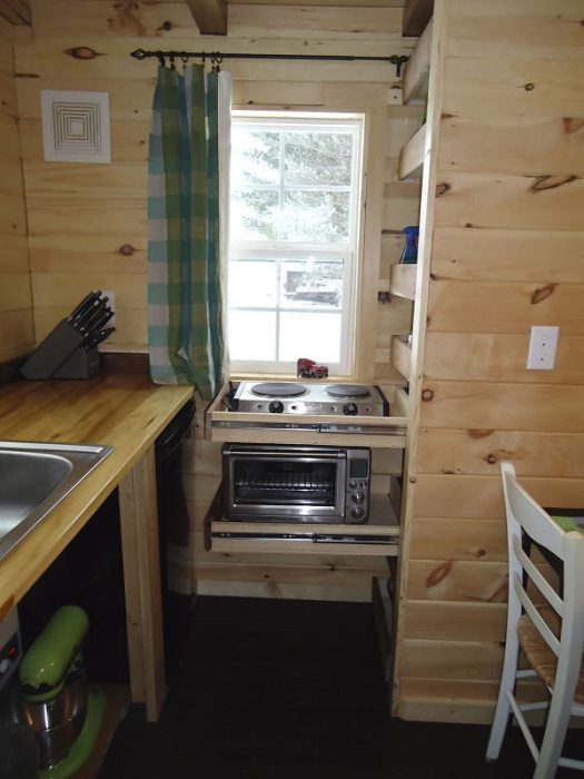 Прекрасный вариант размещения скородок на кухне, то что оптимизирует пространство максимально.