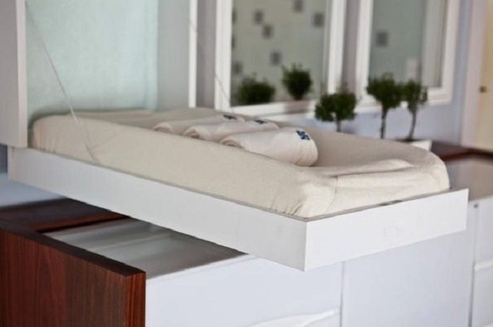 Хорошенький вариант оформления пеленального столика, что точно понравится и создаст комфортные условия.
