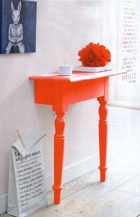 Хороший вариант создать мини-стол из половинки полноценного стола, что выглядит очень нестандартно.