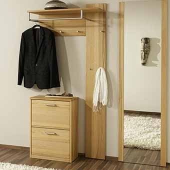 Маленькую тумбу с одним ящиком можно разместить под вешалкой.