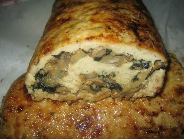 При отпуске рулет нарезают на порции и поливают сметаной.