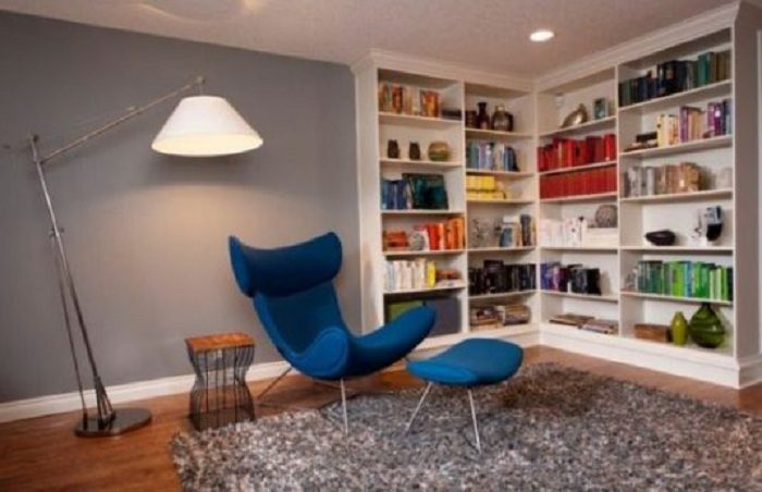 Угол комнаты круто преображены при помощи отменных полок, что создали максимум комфорта.