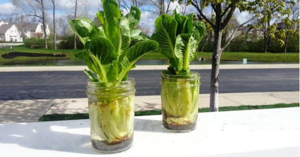 1. Возьмите хотя бы 5 см стебля салата2. Лицевой стороной поместите салат в емкость с водой.