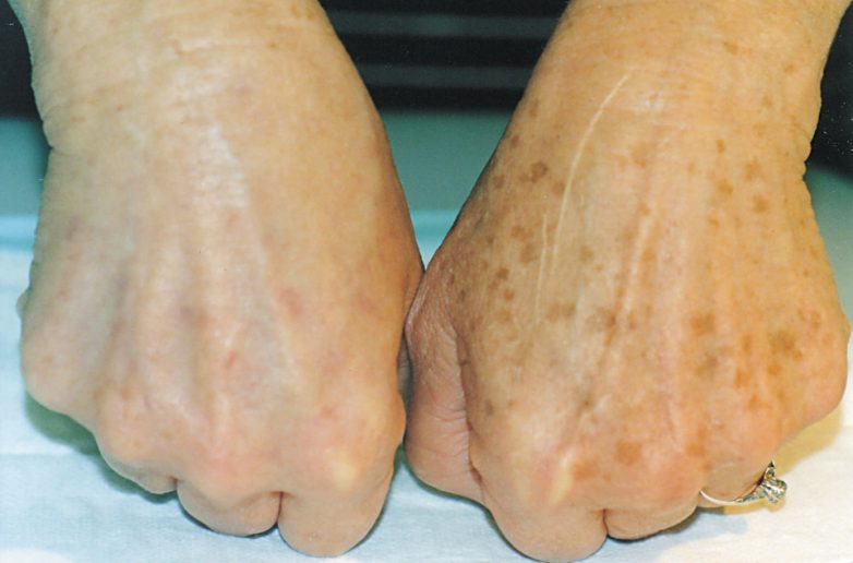И, наконец, сенильные или старческие пятна, вызываются малоизученной формой дистрофии клеток, когда нарушается равномерность распределения меланина в поверхностных слоях кожи. В одних местах он скапливается, образуя темные участки, а в других наоборот полностью исчезает, оставляя белые «звездочки».