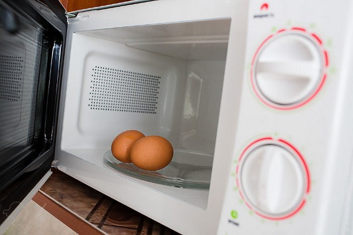 Продукт, который является однозначным табу для микроволновки – это яйца. А ещё сгущёнка. Дело в том, что в микроволновку в принципе нельзя помещать пищу внутри какой-либо оболочку – содержимое от нагрева расширится, а банка или яичная скорлупа – нет. Взрыв неизбежен!
