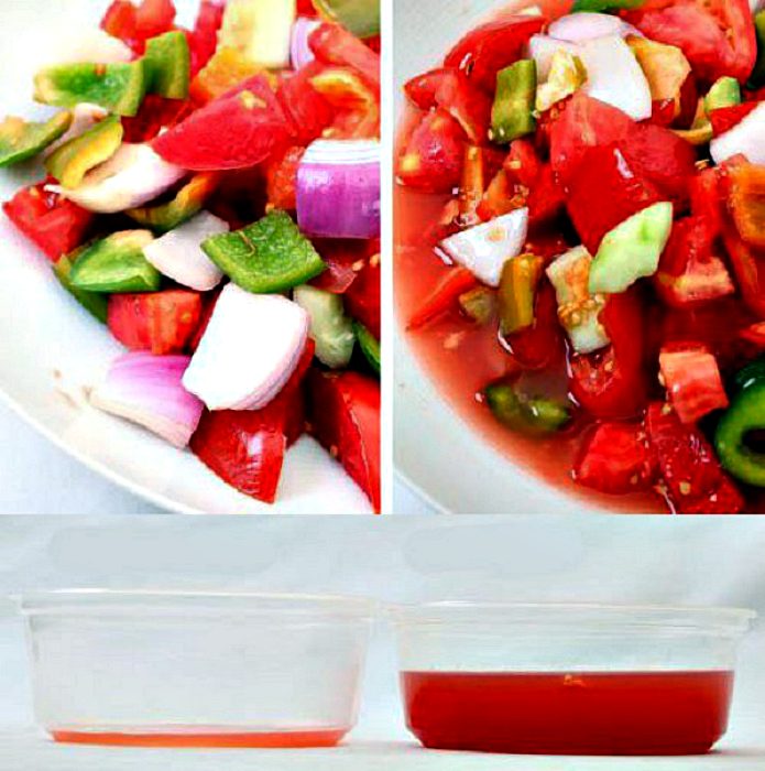 Сочные овощи для салата солите в отдельной миске. Когда соль выведет лишний сок, слейте его и пересыпьте содержимое миски к другим ингредиентам. Такая хитрость позволит продлить жизнь салату и не даст ему превратиться в мало аппетитный суп.