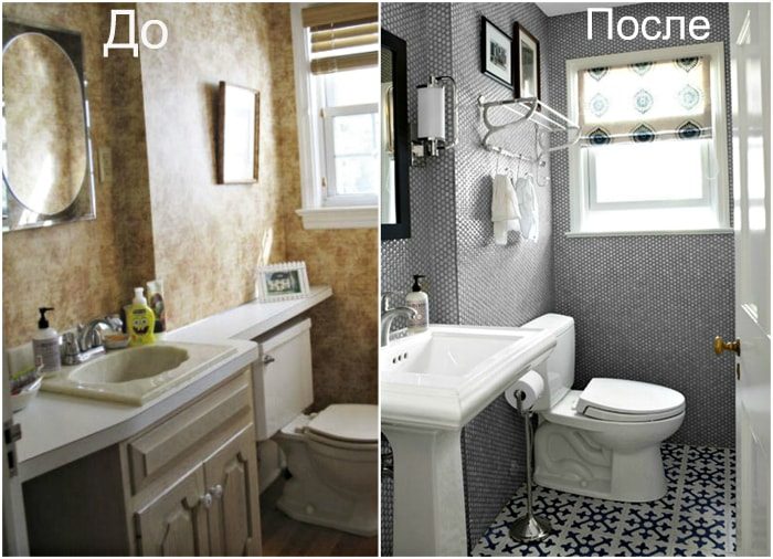 Дизайнеры просто заменили коричневую плитку мелкой серой, а для отделки пола выбрали крупную керамическую плитку в марокканском стиле, таким образов полностью изменив динамику помещения.
