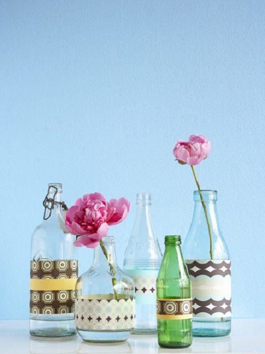 Симпатичное решение создать из обычных бутылок красивые вазы, что станут находкой.