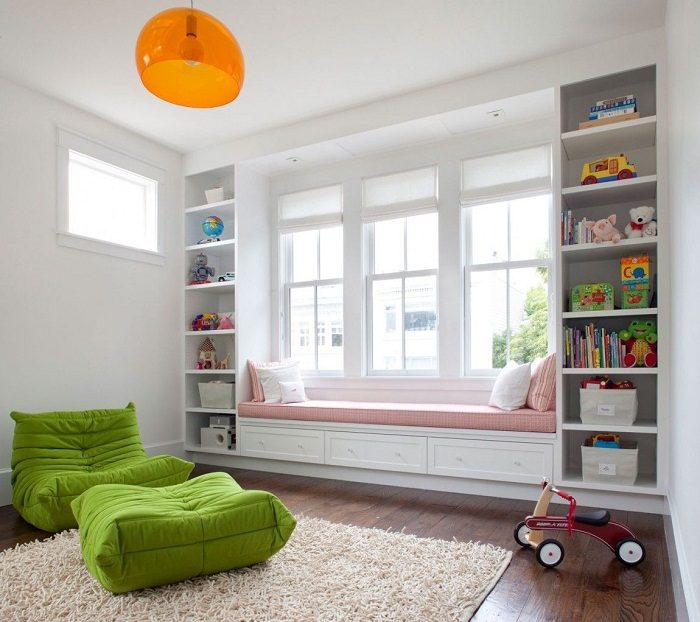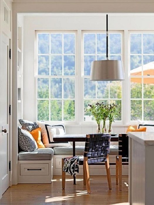 Отличное решение преобразить интерьер комнаты с помощью подоконника с диванчиком, что точно понравится.