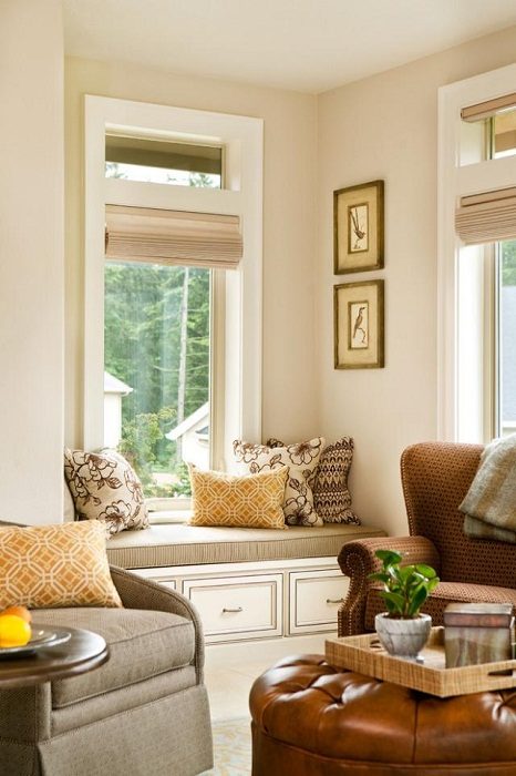 Оригинальный интерьер комнаты с суперским диванчиком у окна, что станет просто находкой и самым лучшим решением.