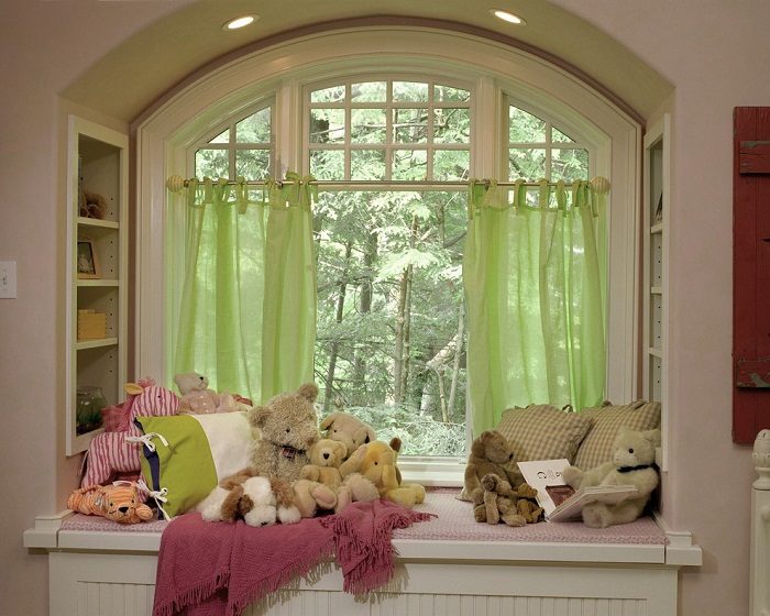 Интересное решение оформить интерьер детской комнаты при помощи уютного подоконника, что создаст симпатичную обстановку.