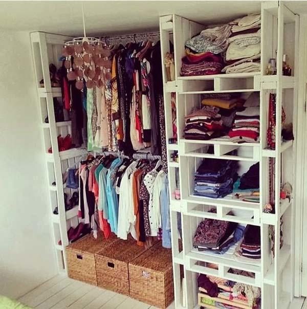 Хранение одежды в изголовье кровати – ещё один креативный метод от DIY