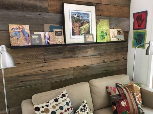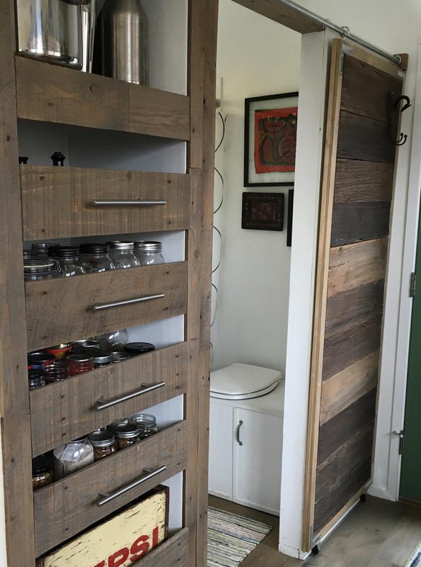 Ящики для хранения на кухне – это поддоны из переработанной древесины поддона, подвесные светильники – из IKEA