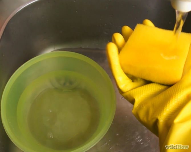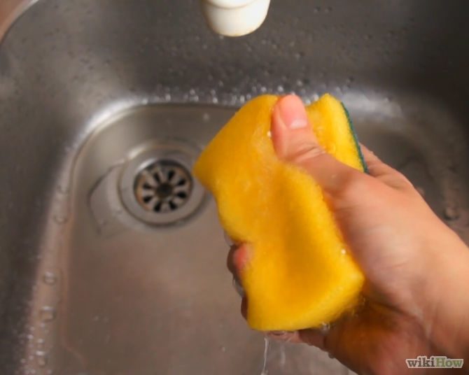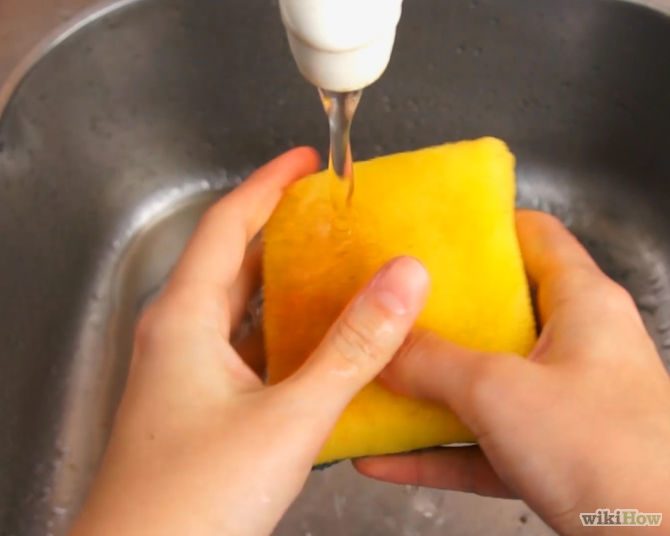 3.Вымойте губку так хорошо, как сможете, используя воду и средства для мытья посуды. Хорошо прополощите губку после этого.