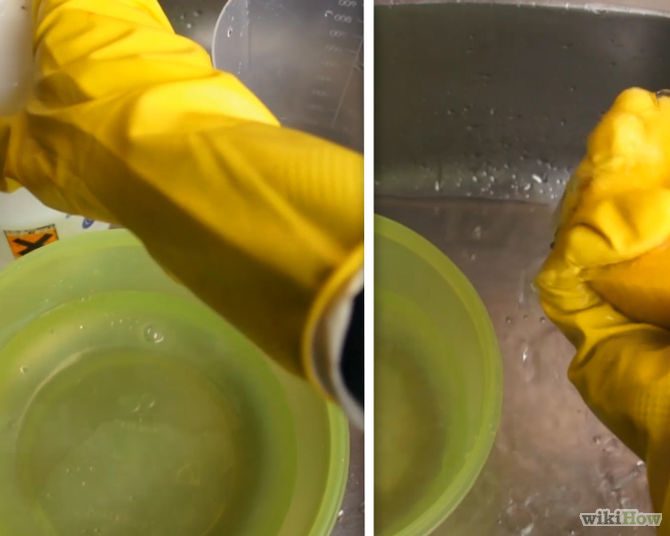4.Растворите немного отбеливателя в маленькой миске.