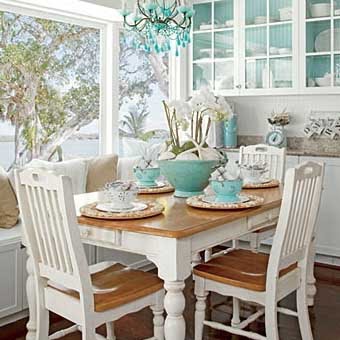 Даже если ваш кухонный стол находится в глубине кухни, вы всегда сможете несложными дизайнерскими приемами создать светлый солнечный интерьер.