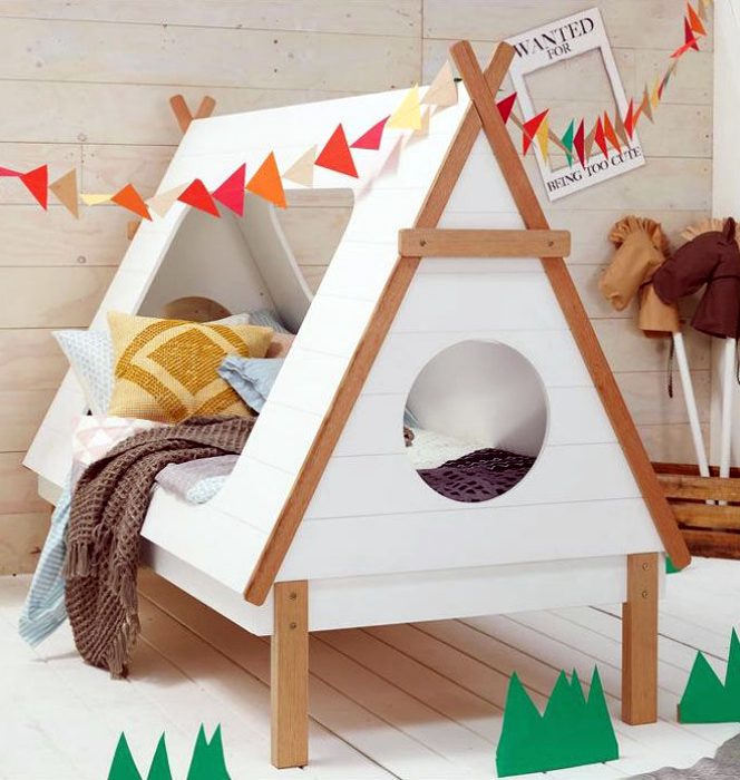 Очаровательная и очень уютная детская кроватка в виде деревянного вигвама, которая позволит малышу почувствовать себя в безопасности и обрести собственный укромный домик для игр и отдыха.