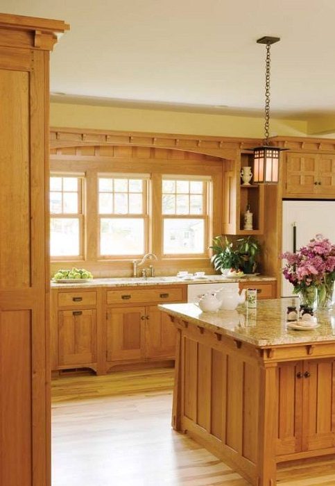 Деревянный интерьер кухни, что однозначно вдохнет современных ощущений в декор.