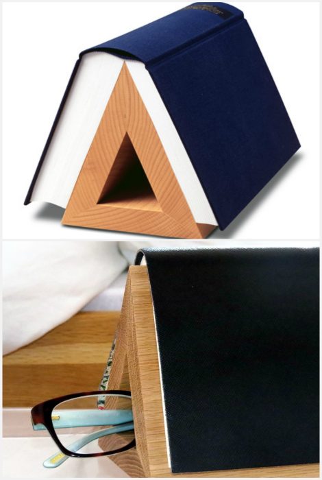 Стильная и практичная деревянная подставка для книги, которая станет прекрасным украшением прикроватной тумбочки.