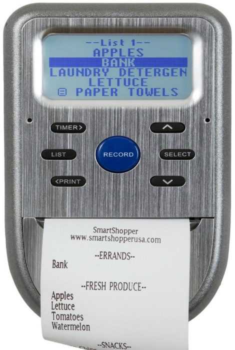 Гениальное устройство для быстрого и удобного составления списка покупок. Нужно просто продиктовать перечень нужных продуктов, а девайс их запомнит, рассортирует по категориям и распечатает список.