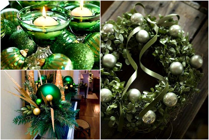 Зеленый цвет — цвет жизни, возрождения и энергии, а еще это самый модный цвет 2017 года. Поэтому тем, кому не по душе красный, могут смело декорировать жилье шарами, гирляндами, скатертями и прочей мишурой всех оттенков зеленого.