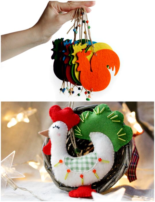 Покровитель наступающего года — петух. Поэтому его всевозможные изображения и фигурки — обязательный атрибут праздничного интерьера. Кроме того, в наступающем году, как никогда, будет в чести хенд-мейд, так что фигурки символа года лучше всего сделать собственными руками. Это могут быть плоские силуэты из цветного фетра или объемные игрушки и композиции из ткани.