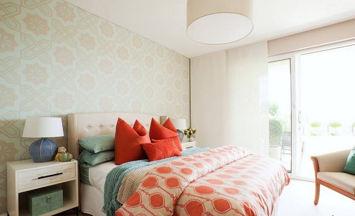 С помощью ярких акцентов возможно создать необыкновенный интерьер в спальной.