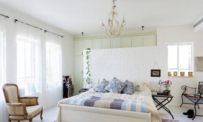 Небольшая светлый спальня делает легкий реверанс восточному стилю в интерьере.