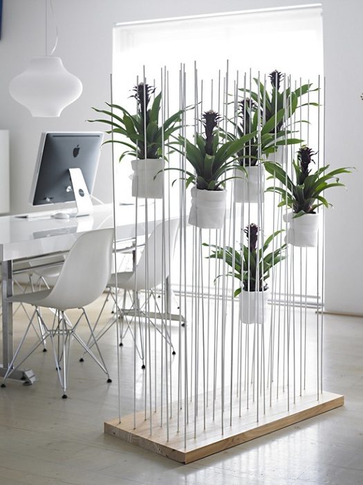 Перегородка с цветочными горшками, что создаст легкость в интерьере.