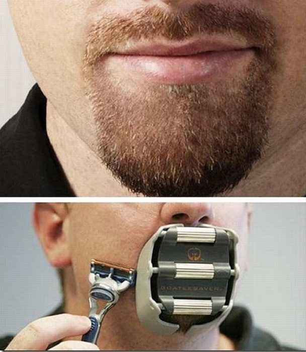 Это оригинальное приспособление поможет поддерживать бороду и усы в идеальном порядке. Достаточно зажать пластиковую форму зубами, сбрить ненужную щетину по контуру и эспаньолка готова. Кстати, в комплекте в формой-шаблоном идут два сменных лезвия для бритвы.