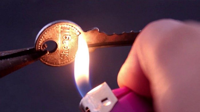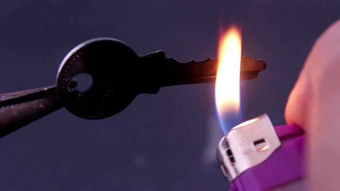 очень сонительно, чтобы этот «ключ что-либо открыл. Зато без всякого сомнения-возникнуть проблемы с еинтвенным оставшимся ключом. Поскольку железо при нагревании расширяется, и при таком агрессивном огне оно прежнюю форму не примет. Так что придется применить известный метод Остапа Бендера, откры