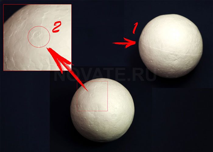 • Пенопластовый шар (в данном примере 7 см в диаметре).