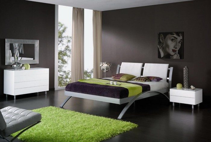Украсить спальню возможно благодаря декору в зеленом цвете.