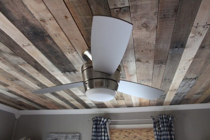Старые доски тоже могут быть полезными.Деревянные доски, на которых заметен отпечаток времени, становятся эффектным декором потолка. Для того чтобы подобная отделка прослужила долго, не забудьте обработать ее защитным составом для древесины.