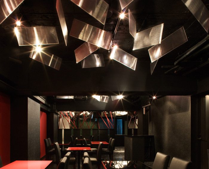 Металл в оформлении потолка.Металлические пластины, например, алюминиевые, сделают интерьер роскошным. А отражающиеся в них световые блики будут способствовать визуальному увеличению пространства.