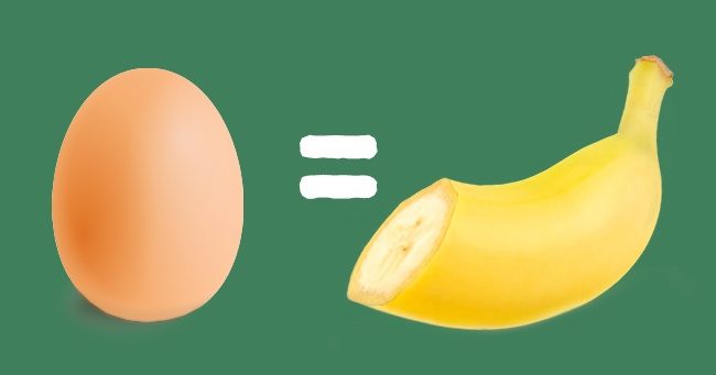 Если вы собрались печь, скажем, булочки или готовить другую выпечку и у вас закончились яйца, то их вполне можно заменить бананом: 1 яйцо = 1/2 банана. Вкус блюда от такой замены хуже точно не станет.