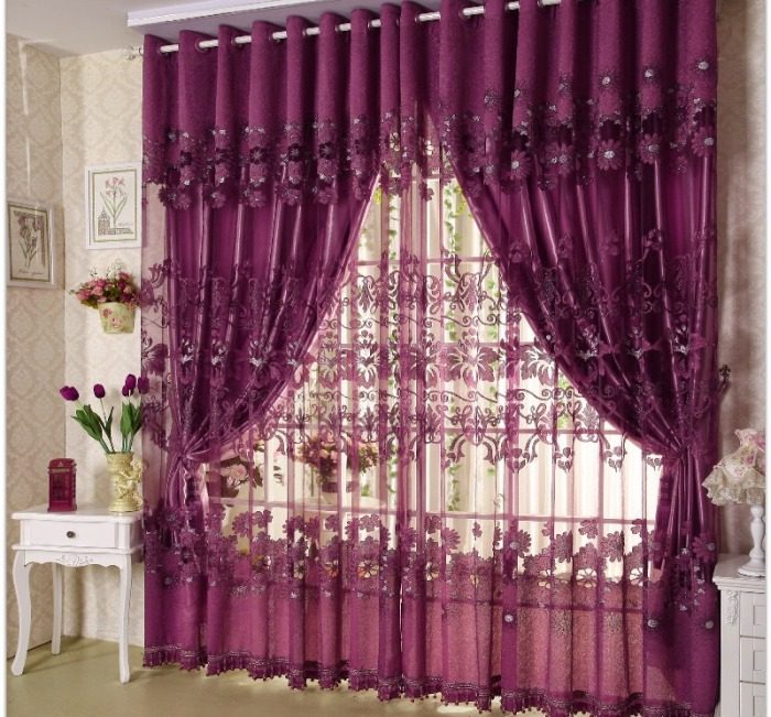 Уютные шторы фиолетового цвета.