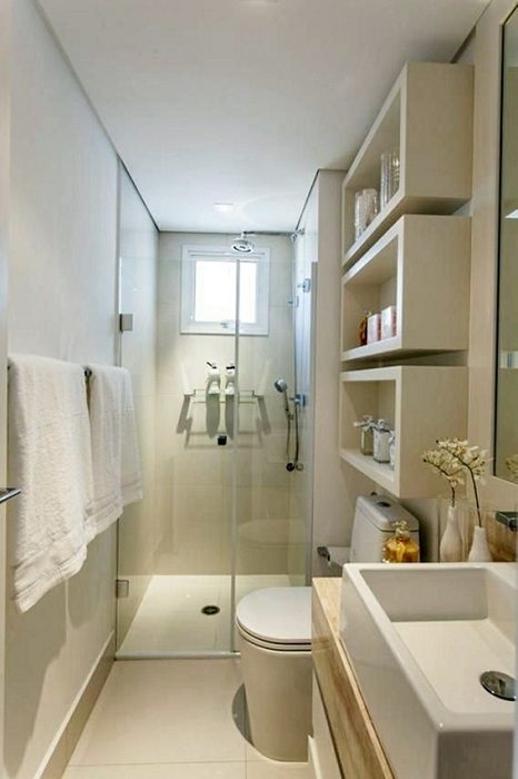 Хорошее дизайнерское решение обустроить интерьер ванной комнаты с крошечной площадью стильно.