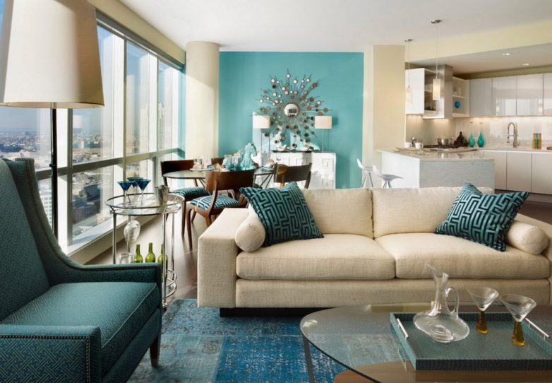 Не спешат дизайнеры отказываться от насыщенного цвета морской волны и бирюзы. Такая цветовая гамма создает уютную и спокойную атмосферу, умиротворяя жителей квартиры.