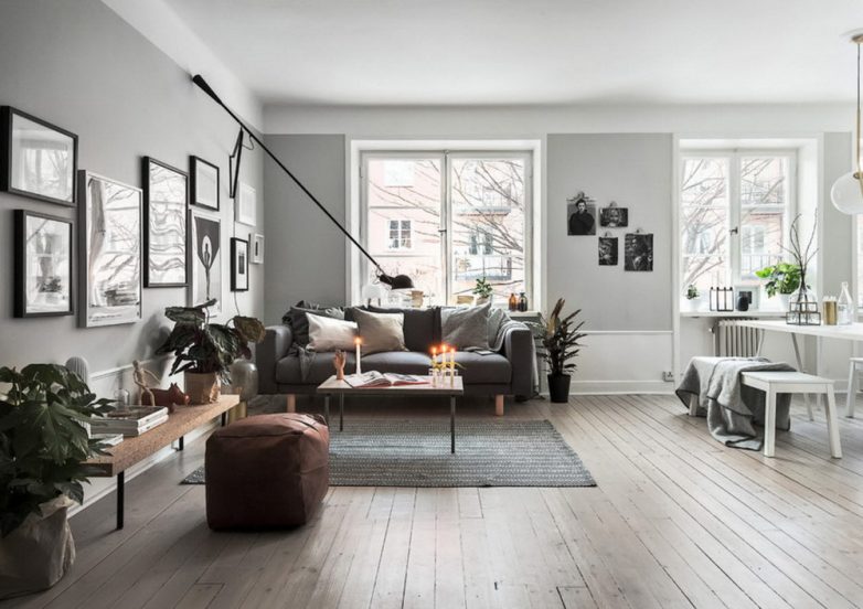 -скандинавский стиль для зала – популярен среди ценителей натуральных материалов в дизайне.