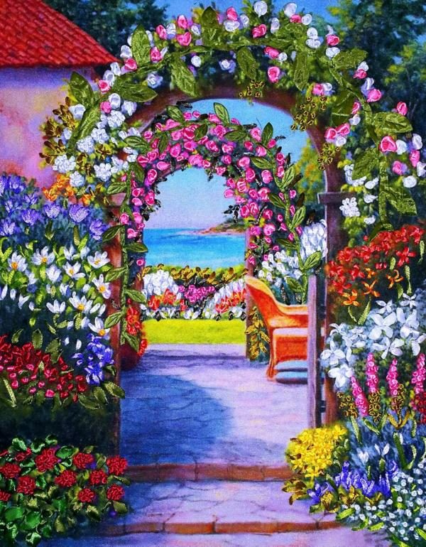 В вышивке Меко использует сатин и ленты. На одну работу у нее ходит 1-3 недели.