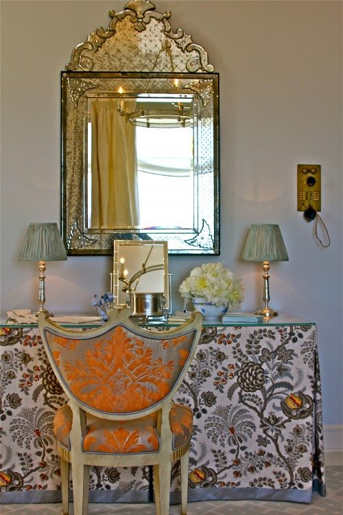 Не забудьте подобрать к трюмо удобный пуфик или стул, подходящий по размеру. Также следует продумать систему освещения. Рядом с зеркалом необходимо повесить светильник или бра над зеркалом или два, по обеим сторонам от зеркала.