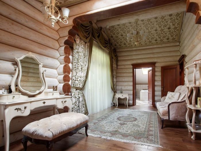Интерьер деревянного дома в классическом стиле кантри.