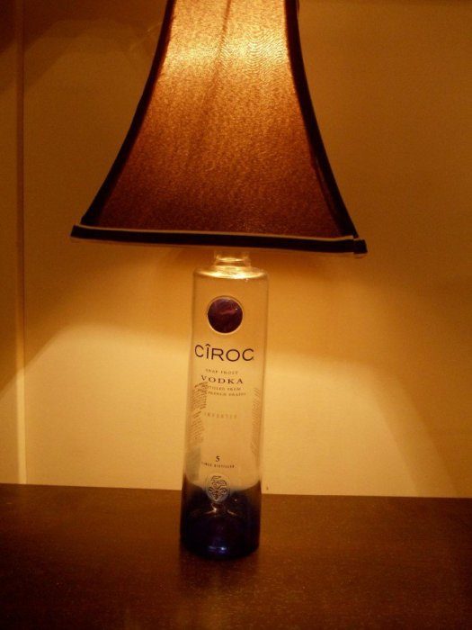 Бутылка может стать отличным основанием для лампы.