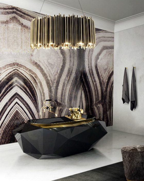 Роскошная черная ванна, грани которой переливаются, как бриллианты.