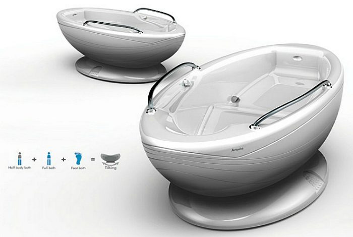 Мобильная ванна, способная принимать несколько разных положений, грамотно распределяя воду, что способствует ее экономии. Кроме того, такая ванна станет настоящей находкой для пожилых людей и людей с ограниченными возможностями.