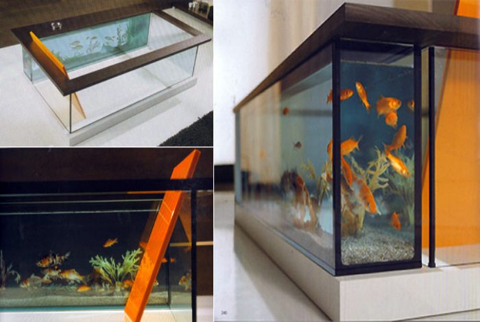 Стеклянная ванна с аквариумом.