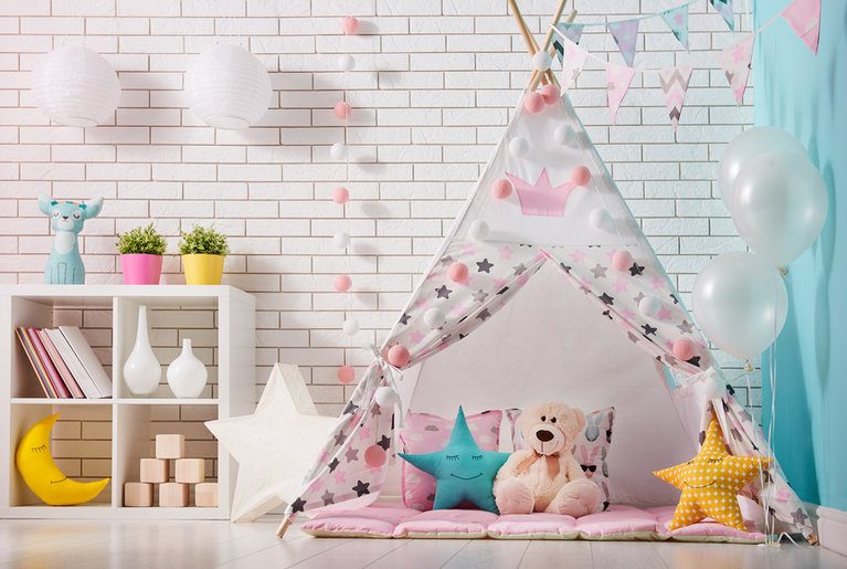 Для детской зоны всегда нужно выбирать самое теплое место с достаточным количеством света. Здесь не должно быть сквозняков, и лучше, если детская зона будет не на проходе. Отделить от основной комнаты ее можно как легкими мобильными конструкциями, так и необычными текстильными перегородками, шторами или ширмой. Ширма — очень удобное решение, ведь ее всегда легко убрать в сторону и объединить пространство.