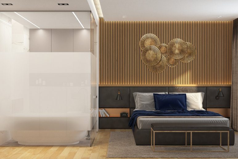 Системы хранения вещей и расстановку мебели необходимо продумать еще на стадии планировки. Обратите внимание на встроенную мебель, которая подарит интерьеру визуальную свободу от всего лишнего.